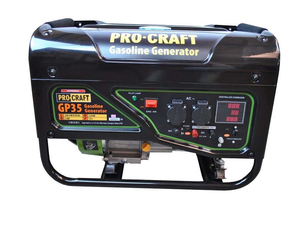 Procraft GP35 je určený na použitie ako nezávislý generátor energie pri výpadku prúdu, ako zdroj energie pri kempovaní, na záhrade atď., kde nie je k dispozícii elektrická sieť. Vďaka vysokému výkonu dokáže napájať nielen domáce spotrebiče, ale aj spotrebiče indukčného typu. Generátor energie má 15l palivovú nádrž, ktorá zaručuje dlhú nepretržitú prevádzku. Robustný ochranný rám umožňuje používať generátor energie v akýchkoľvek podmienkach a uľahčuje aj jeho prepravu. Súčasťou dodávky je kľúč na zapaľovaciu sviečku. Balenie v kartóne. Prepäťová ochrana AVR.