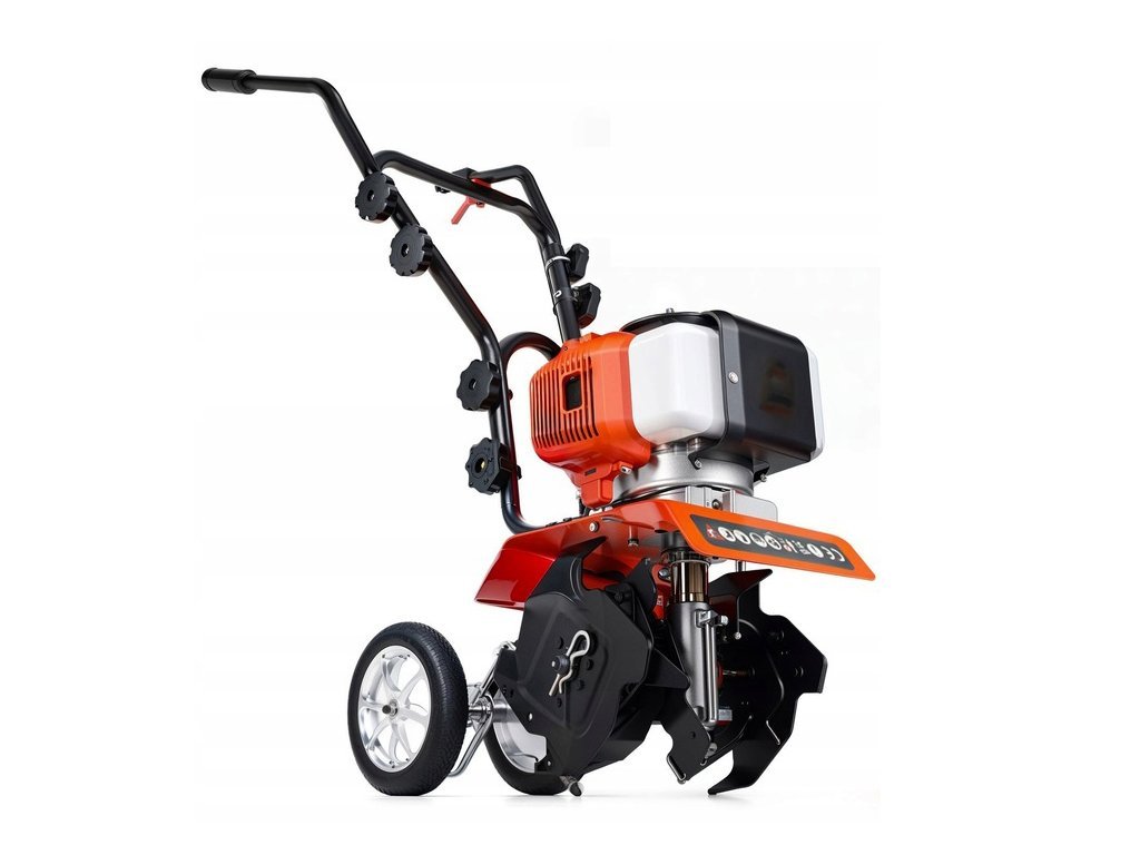 Srdcom kultivátora je spoľahlivý a výkonný dvojtaktný motor s objemom 52 cm³, ktorý generuje maximálny výkon až 5.2 HP (3.8 kW) pri 7500 otáčkach za minútu. Táto sila zaručuje, že sa nože bez problémov zaryjú aj do utlačenej a tvrdšej pôdy. Motor je vybavený kvalitným membránovým karburátorom a manuálnym štartérom, ktoré zaisťujú spoľahlivé štartovanie. Palivová nádrž s objemom 1.2 litra poskytuje dostatočnú autonómiu pre dlhšie pracovné intervaly bez nutnosti častého dopĺňania paliva.