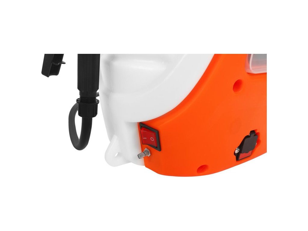 Chrbtová konštrukcia s pohodlnými, nastaviteľnými popruhmi rovnomerne rozkladá hmotnosť naplneného postrekovača, čím šetrí váš chrbát. Samotná nádrž je vyrobená z kvalitných materiálov odolných voči chemikáliám a zmene farby. Pevné kovové spony na popruhoch zaručujú vyššiu odolnosť a bezpečnosť v porovnaní s bežnými plastovými sponami. Prístup k batérii je jednoduchý vďaka kontrolnému krytu, čo uľahčuje jej prípadnú výmenu.