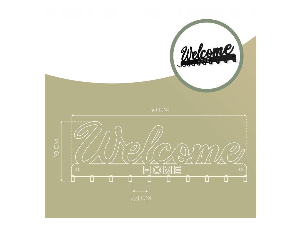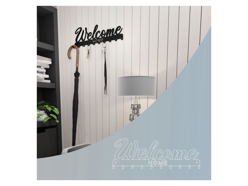 Dizajnový vešiak na kľúče s nápisom "Vitajte doma" (Čierny)