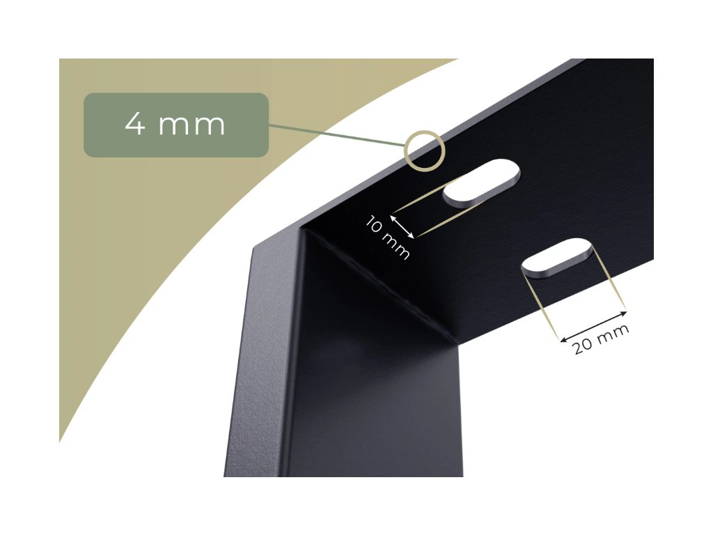 Celý povrch nôh je ošetrený technológiou práškového lakovania (komaxit). Táto moderná povrchová úprava vytvára na oceli tvrdú, rovnomernú a hladkú vrstvu v elegantnej matnej čiernej farbe. V porovnaní s tradičným náterom je tento povrch výrazne odolnejší voči poškriabaniu, nárazom a oderu. Navyše poskytuje spoľahlivú ochranu proti korózii, čo zaručuje, že si nohy zachovajú svoj bezchybný vzhľad po dlhé roky.