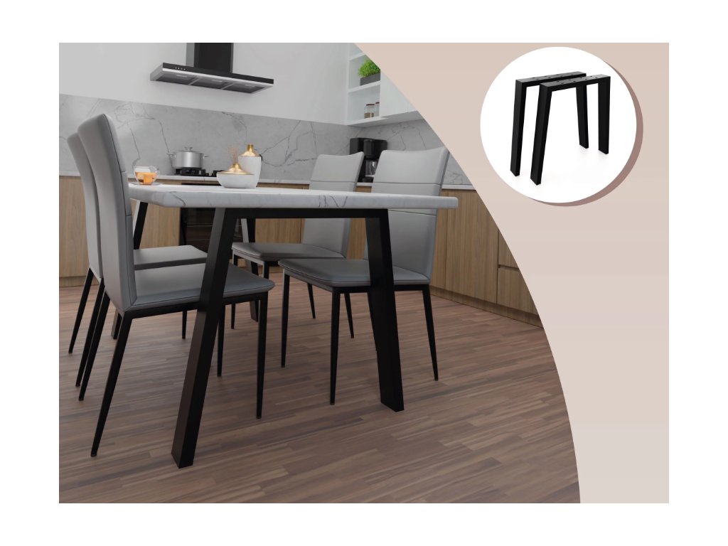 Jednoduchý a symetrický tvar písmena U (známy aj ako "U-frame") je esenciou minimalistického dizajnu. Jeho čisté, neprerušované línie pôsobia veľmi moderne, usporiadane a elegantne. Vďaka svojej univerzálnosti sa tieto kovové nohy na jedálenský stôl hodia do takmer každého štýlu interiéru – od surového loftu cez škandinávsky až po moderný minimalizmus. Ich dizajn decentne rámuje priestor pod stolom a necháva naplno vyniknúť kráse a materiálu samotnej stolovej dosky.