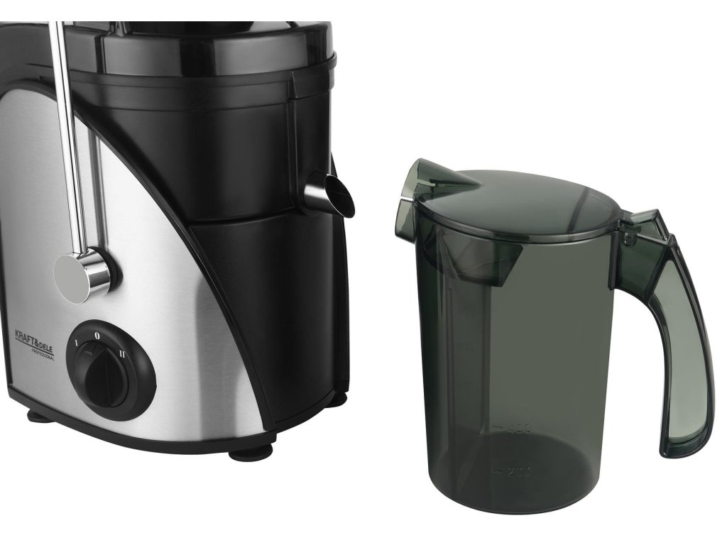Dve rýchlosti umožnia prispôsobiť výkon typu suroviny – nízka rýchlosť pre bobuľové a citrusové plody, vyššia pre tvrdú zeleninu a jablká. Zátka anti-drip udrží pracovnú plochu čistú pri výmene pohára. Džbán s oddeľovačom peny zaručí číru, vizuálne čistú šťavu pripravenú na servírovanie. Veľká nádoba na dužinu znižuje nutnosť častého vysýpania pri väčších dávkach.