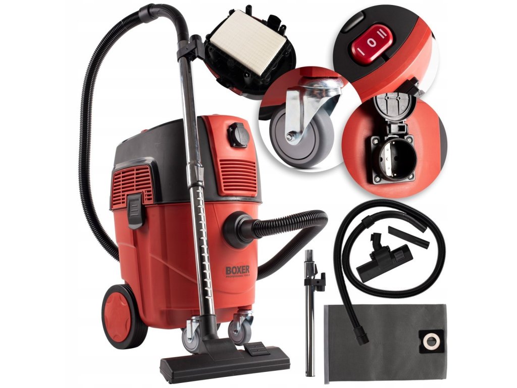 Vysávač je vybavený automatickým systémom oklepu filtra, ktorý priebežne čistí HEPA filter bez potreby manuálneho zásahu. To zabezpečuje konštantnú saciu silu a dlhšiu životnosť filtra, čo je zásadné pri práci v prašnom prostredí. Nádoba s objemom 35 litrov je vyrobená z odolnej nehrdzavejúcej ocele, ktorá zaručuje vysokú pevnosť a jednoduché čistenie.