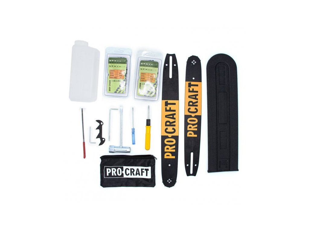 Benzínová reťazová píla Procraft GS-58X je určená na výrub stromov, spracovanie palivového dreva, prerezávanie veľkých konárov. Benzínový motor s výkonom 1400 W a vysokými otáčkami až 11800 ot/min zaručuje dlhú bezproblémovú prácu. Automatický systém mazania reťaze a kvalitná lišta zvyšujú spoľahlivosť stroja. Je vybavená ochranou proti spätnému rázu a bezpečnostnou nárazovou brzdou pílovej reťaze. Balenie v kartóne.