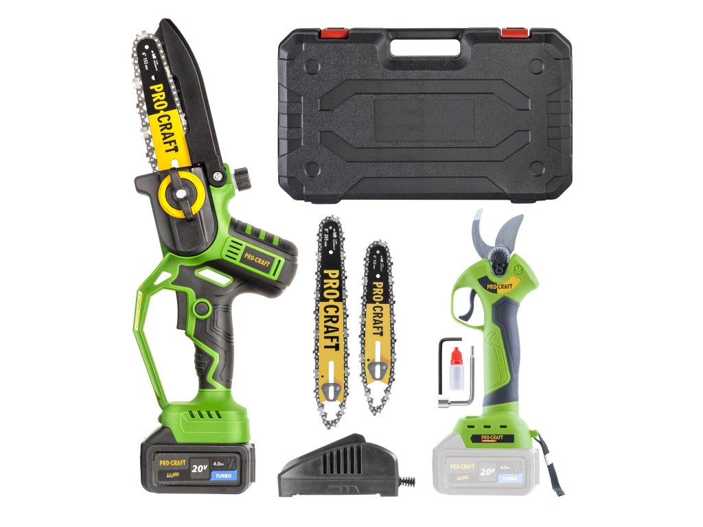 Sada aku záhradného náradia Procraft PKA32Li + ES28Libb predstavuje ideálnu kombináciu pre každého, kto hľadá výkonného, ľahkého a jednoducho ovládateľného pomocníka na prácu v záhrade. Táto sada obsahuje jednoručnú reťazovú pílu a aku nožnice na konáre – obe zariadenia sú poháňané rovnakou 20V Li-ion batériou, čo zabezpečuje maximálnu efektivitu a flexibilitu pri práci.