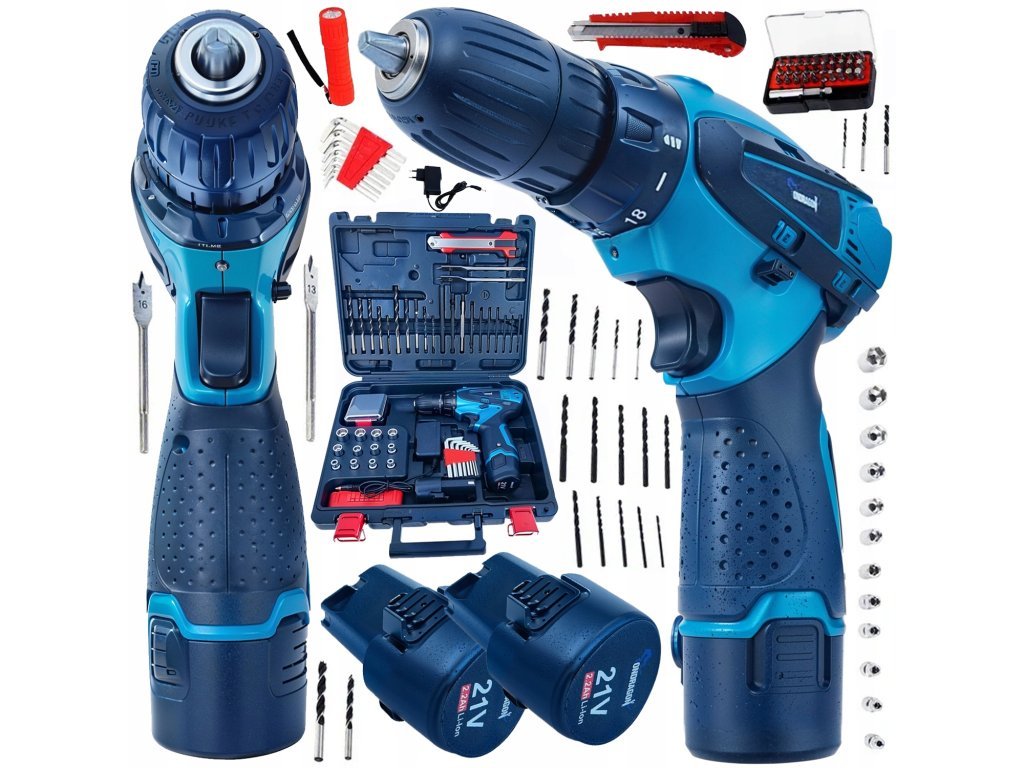 Univerzálny akumulátorový vŕtací skrutkovač 21V – Kompletná sada